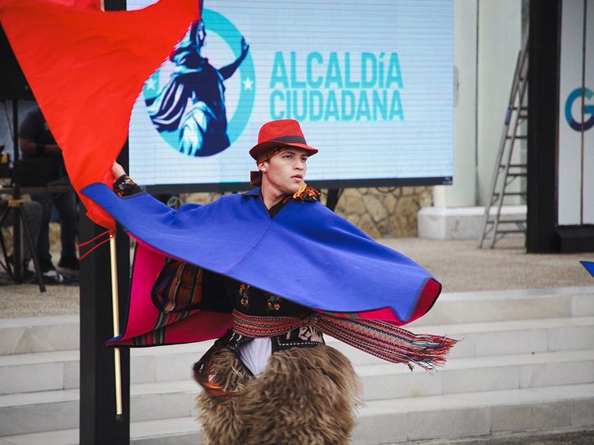 Luego el turno fue del grupo folclórico Espíritu Andino que con ritmos de la serranía ecuatoriana presentaron coreografías. Los danzantes, que lucieron ponchos, zamarros, sombreros, collares, anacos y blusas bordadas, interpretaron un ritual con fuego que atrajo la mirada atenta de los asistentes.