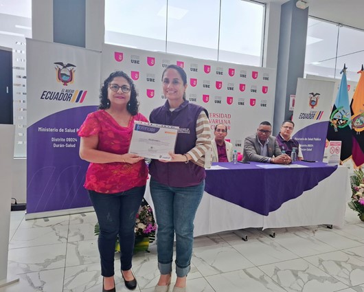 Pie de foto: (Derecha) Dra. Blanca Nieto, médica ocupacional de Plastigama Wavin, recibe una certificación por parte de miembros del Ministerio de Salud Pública.