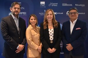 Pie de foto (izquierda a derecha): Antonio Arosemena, Vicepresidente Comercial Costa; Giancarla Vásquez, Gerente de Agencias; Esmeralda Malagón, Vicepresidenta de...